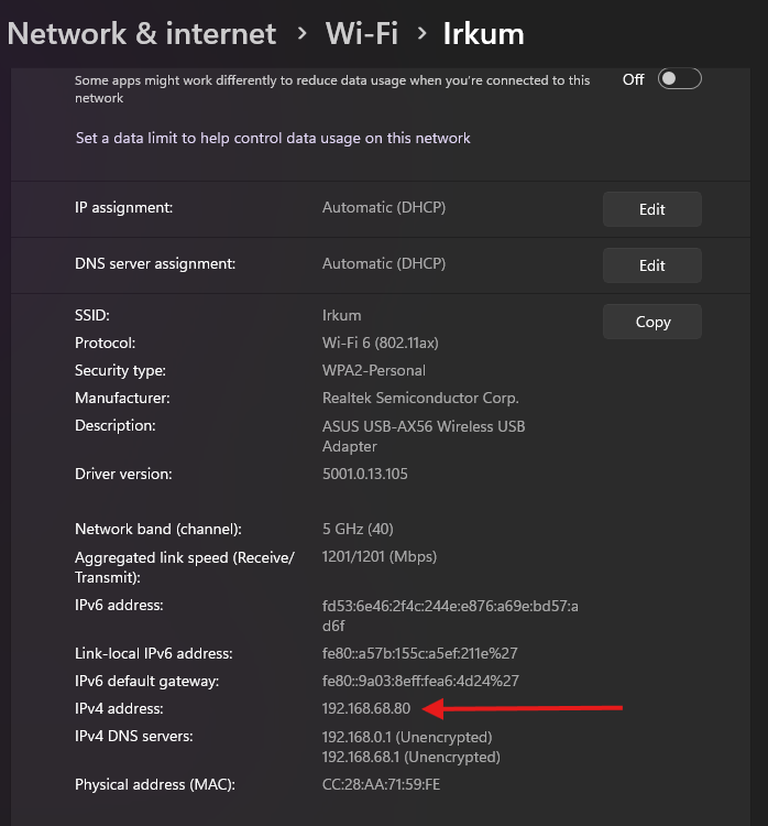 ipconfigand press Enter - Look for "IPv4 Address" under your network adapter